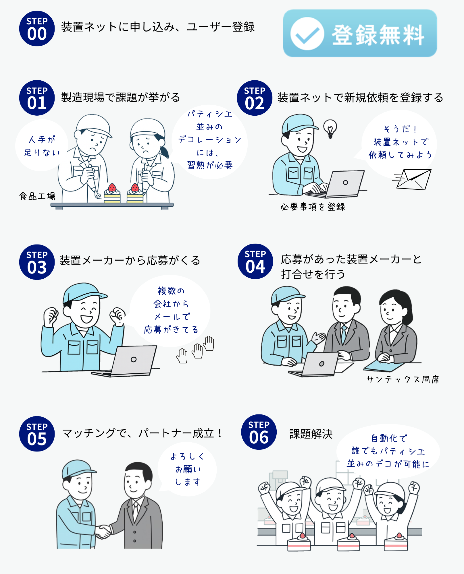 装置ネットは、お困りごとのある製造業のお客様と、解決できるパートナーを繋ぐマッチングサービスです。